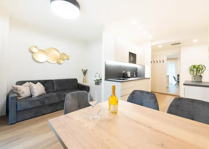 El Meranosuites - Therme está a alrededor de 5 minutos en coche de los Lagos de Sopranes. Ofrece un balcón y una zona de estar con vistas a las montañas. Los huéspedes de este apartamento de 50 m^2 disfrutarán de la máxima relajación, con lujos como parque acuático y terraza solárium.